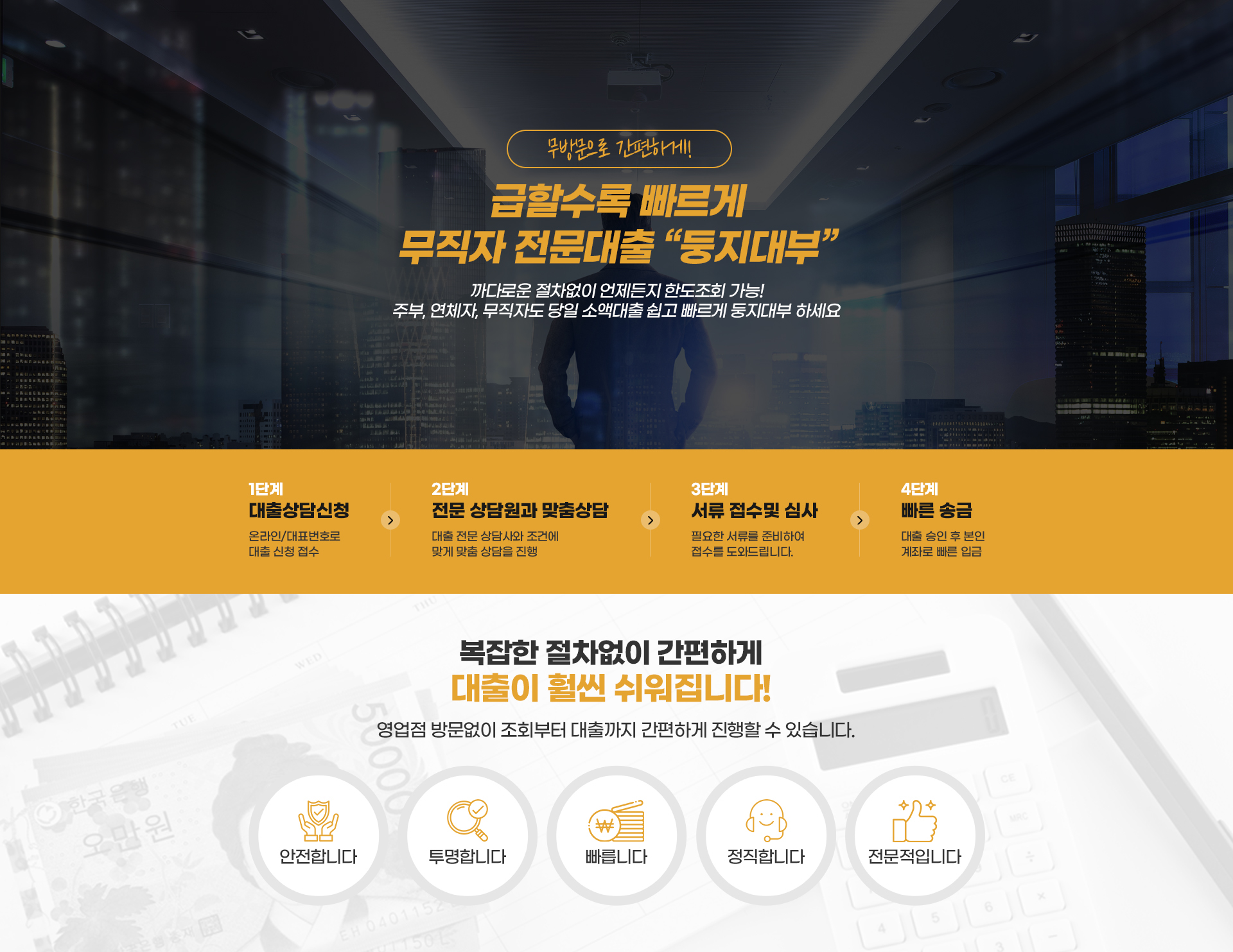 대출중개수수료 없음 중개수수료를 요구하거나 받는것은 불법으로 대출과 관련된 일체 수수료를 받지 않습니다.